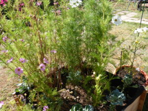 A la faveur de ma liberté retrouvée et du premier confinement, j’ai eu le goût de me mettre au potager. Ma terre caillouteuse est on ne peut plus ingrate. J’ai donc mis en place un potager en carrés surélevés, passant en quelques mois d’un seul carré à sept. Rien que la mise en place était déjà un labeur plaisant. Billes d’argile, terre, compost, terreau, les strates à élaborer me laissaient le loisir d’imaginer des légumes goûteux à la belle saison et jusqu’à la fin de l’hiver. Entre brouettes à charrier et mal de dos, je retrouvais avec jubilation les gestes ancestraux de mes aïeux agriculteurs.