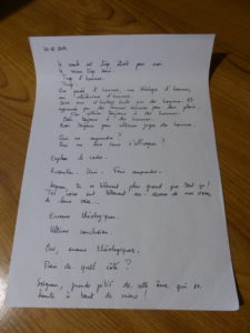 C’était un soir d’insomnie. En 2014. Je m’étais donné la peine d’écrire longuement, dans le menu détail, la quintessence de ma foi méditée au cours de quinze années d’oraison intense. J’avais confié tout cela à un homme d’Eglise respecté que mon propre curé m’avait conseillé comme accompagnateur spirituel. “C’est une perle”, me disait-il. Et je parcourais plus de 100 kilomètres en voiture pour aller le voir.
