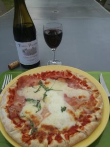 Les clients affluaient vers le camion, regardant d’un air étonné ces dames qui sortaient d’une église un jeudi soir. L’odeur de la pizza flottait dans l’air bien davantage que les dernières notes de notre cantique à Marie.