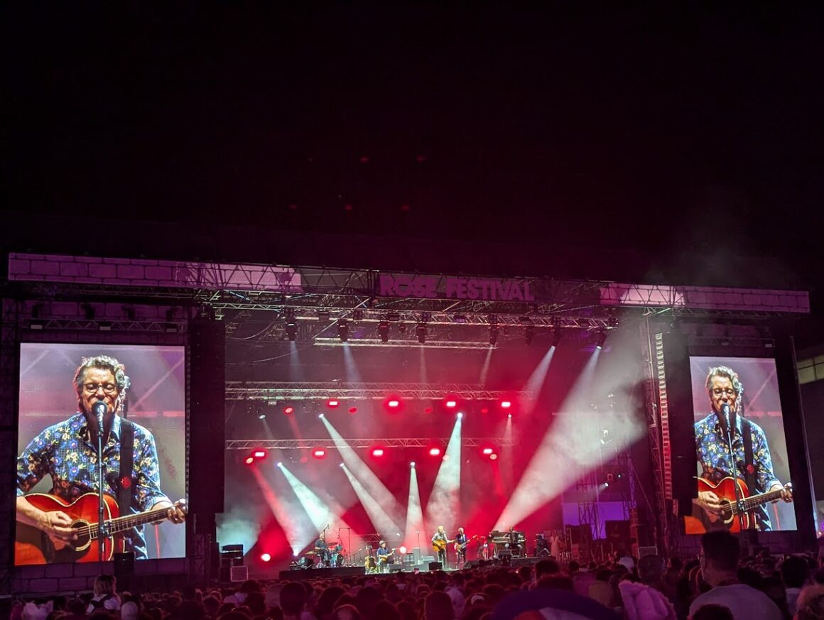 Nous sommes enthousiastes et découvrons toutes deux pour la première fois l’ambiance chaleureuse du Rose Festival, mon amie veut découvrir les talents de ma fille chérie qui se lance dans une carrière de chanteuse débutée ici à Toulouse sous le nom de Blue Jay, et qui se produit ce soir sur la petite scène malheureusement exactement à la même heure que le grand Francis Cabrel pour lequel je suis venue. Choix qui me coûte, j’aurais voulu voir et applaudir ma fille, mais j’ai fait choix depuis plusieurs mois de m’offrir le premier concert de Francis Cabrel de toute ma vie !