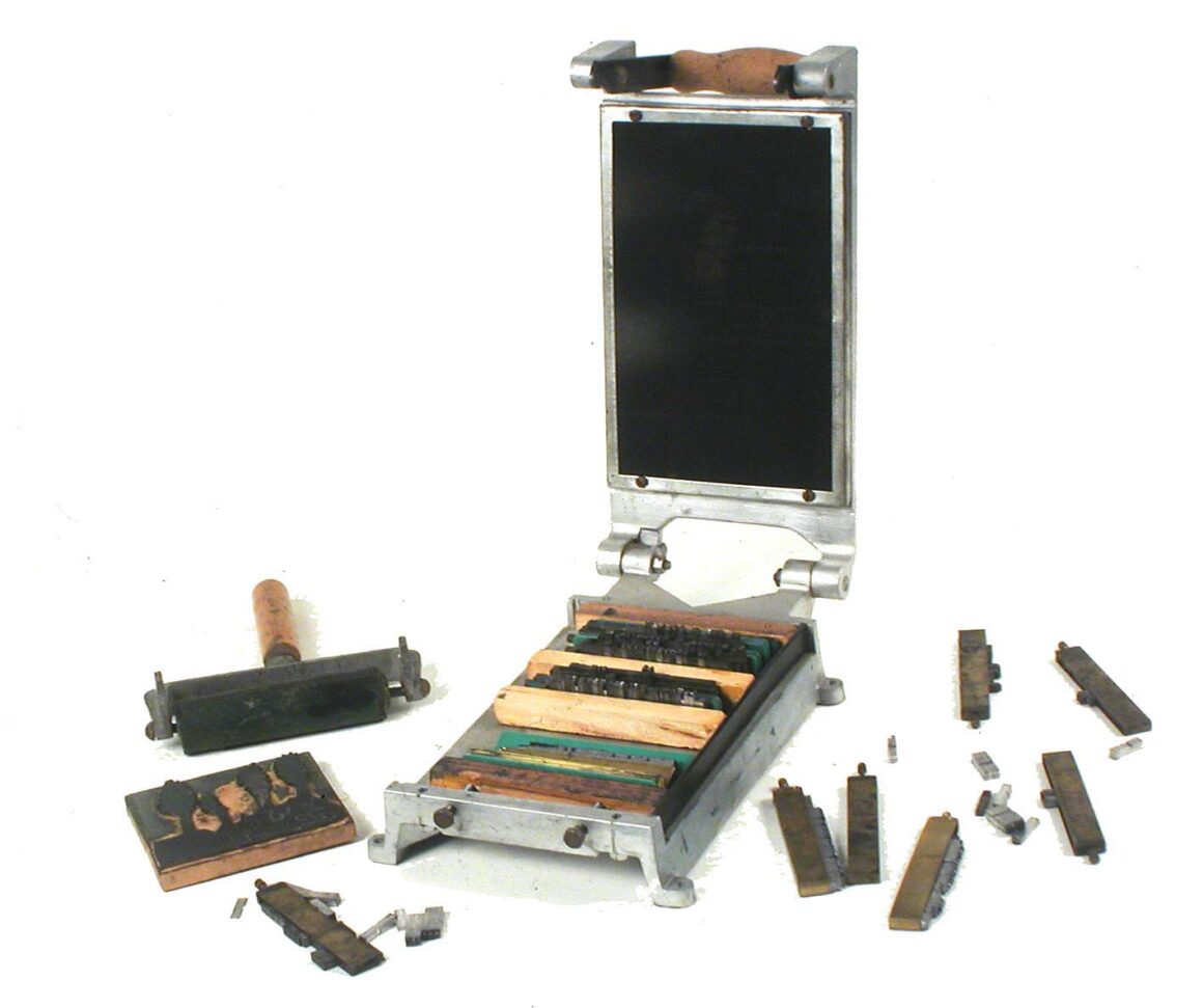 Mais quant à moi, mon bonheur était ailleurs. Déjà, j’adorais écrire, et le maître s’inspirant un peu de la pédagogie Freinet, on pouvait produire des textes à profusion en classe et à la maison, et il nous les rendait tous lus, corrigés, avec des pistes d’amélioration et beaucoup de bienveillance. Nous étions autorisés à les lire à haute voix à nos camarades, et, comble de la récompense, à en imprimer certains avec une vraie imprimerie miniature à la Gutenberg qui nous servait à éditer un journal scolaire. Quelle joie ce fut l’année où nous sommes passés des stencils qui tachaient les doigts aux caractères en plomb, patiemment assemblés dans des composteurs que nous devions aligner ensuite sous la presse, le meilleur moment étant le passage du rouleau à encre sur les caractères ! Puis on appuyait fort sur la presse pour imprimer autant de feuilles que nécessaire. J’aimais par dessus tout cette activité, et je me dépêchais d’avoir fini mes exercices de français dans le Bled et les problèmes regorgeant de multiplications et de divisions pour rejoindre le fond de la classe où se trouvait l’atelier imprimerie.