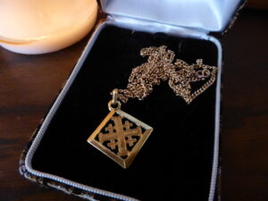 Et puis il y a là un bijou que je ne connais pas du tout, une croix carrée, un peu étrange. Jamais je n’ai vu notre mère la porter.