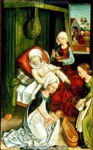 Image : Naissance de saint Roch, retable de St. Lorenz, Nuremberg, XVe