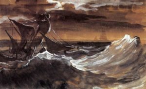 Image : “Bateau à voile sur les mers orageuses” de Jean Louis Théodore Géricault XIXe