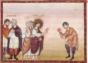 Image : Jésus guérit l’homme à la main paralysée Codex Egberti (fin Xe)